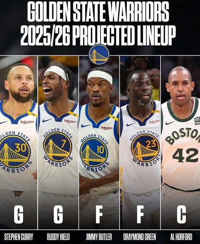 另外,霍福德的合同也被公開,2年1200萬(wàn)美元,第二年為球員選項(xiàng),霍福德預(yù)計(jì)將擔(dān)任首發(fā)中鋒,并渴望再度沖擊總冠軍。再加上回歸勇士的梅爾頓、小佩頓,還有次輪秀理查德,勇士在三天之內(nèi),連續(xù)簽下了6名球員,這樣一來(lái),他們的15人大名單已滿,新賽季陣容正式確定,分別為庫(kù)里、巴特勒、格林、希爾德、庫(kù)明加、梅爾頓、霍福德、波杰姆斯基、穆迪、小佩頓、TJD、波斯特、桑托斯、理查德和小庫(kù)里。而勇士的首發(fā)陣容也基本定型,那就是37歲的庫(kù)里、32歲的希爾德、36歲的巴特勒、35歲的格林和39歲的霍福德。