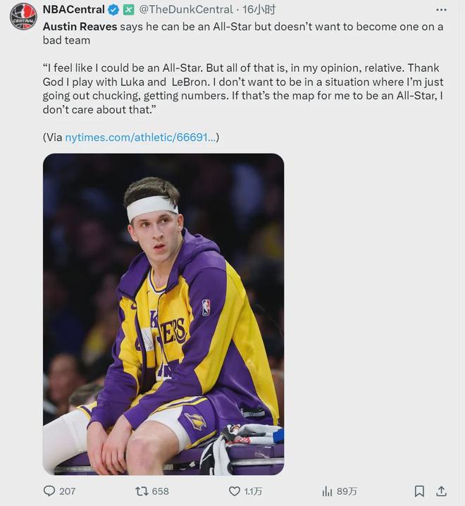 北京時(shí)間10月1日,距離常規(guī)賽揭幕戰(zhàn)還有21天。湖人后衛(wèi)里夫斯接受采訪時(shí)說(shuō)道:“我覺得自己完全有能力入選全明星,但我不想靠刷數(shù)據(jù)進(jìn)全明星。我不想處在那種只能不斷出手、只能刷數(shù)據(jù)的環(huán)境,那樣的全明星我根本不在乎。”